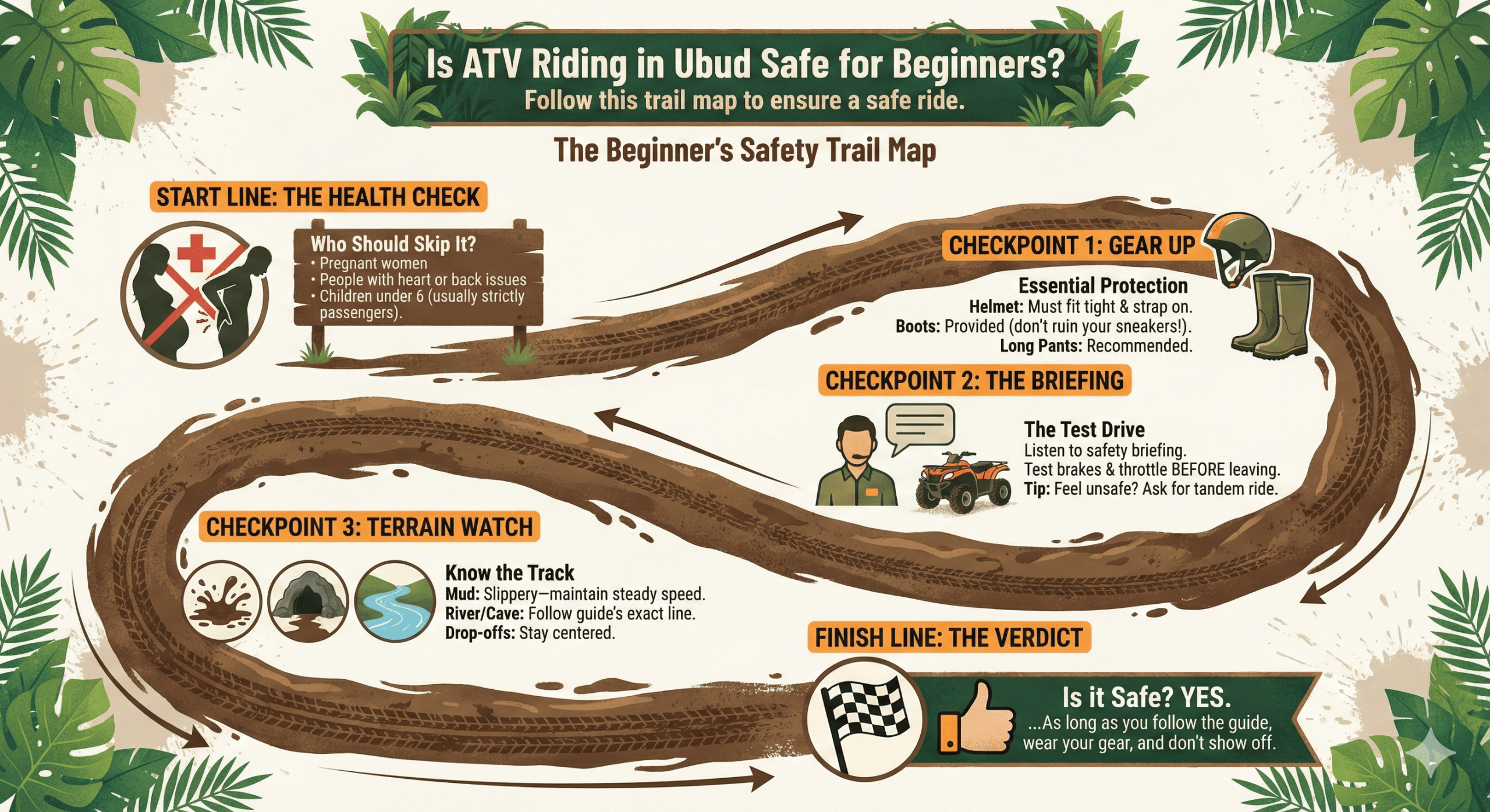 So, is ATV riding in Ubud safe for beginners? Absolutely. But there’s a game you’ve got to play by.